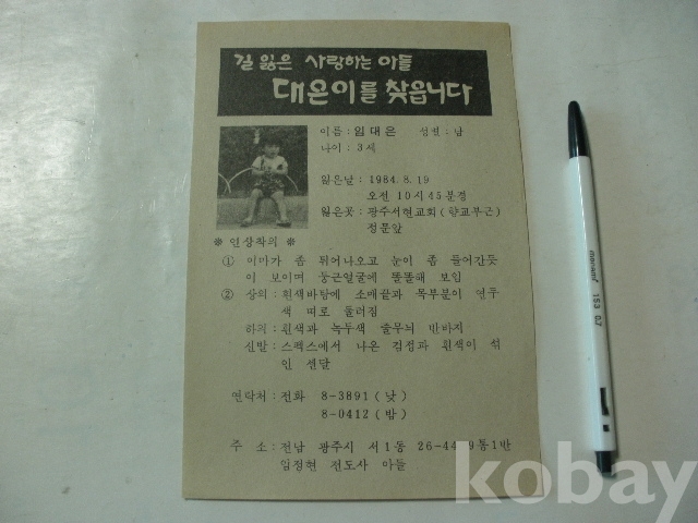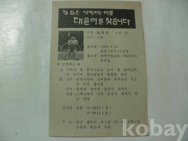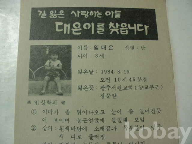길 잃은 사랑하는 아들 - 대은이를 찾읍니다 (1984년, 전남 광주시)