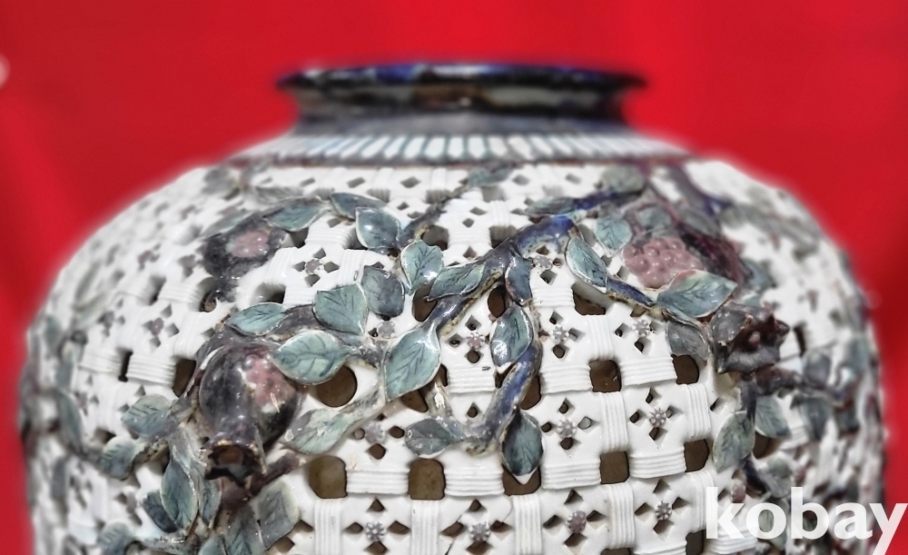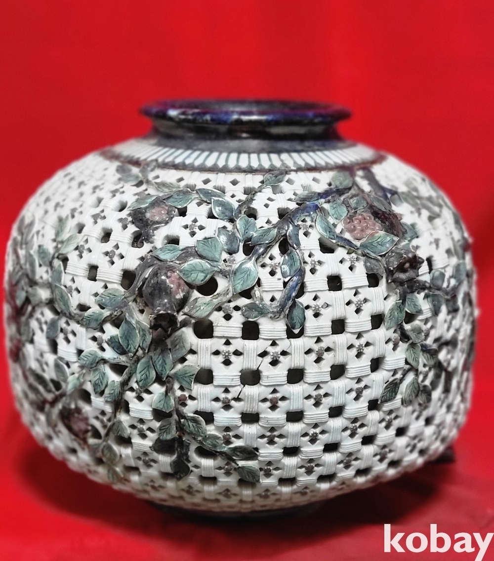 도자기 제작 중 가장 어려운 투각 작품으로 매우 아름답습니다,