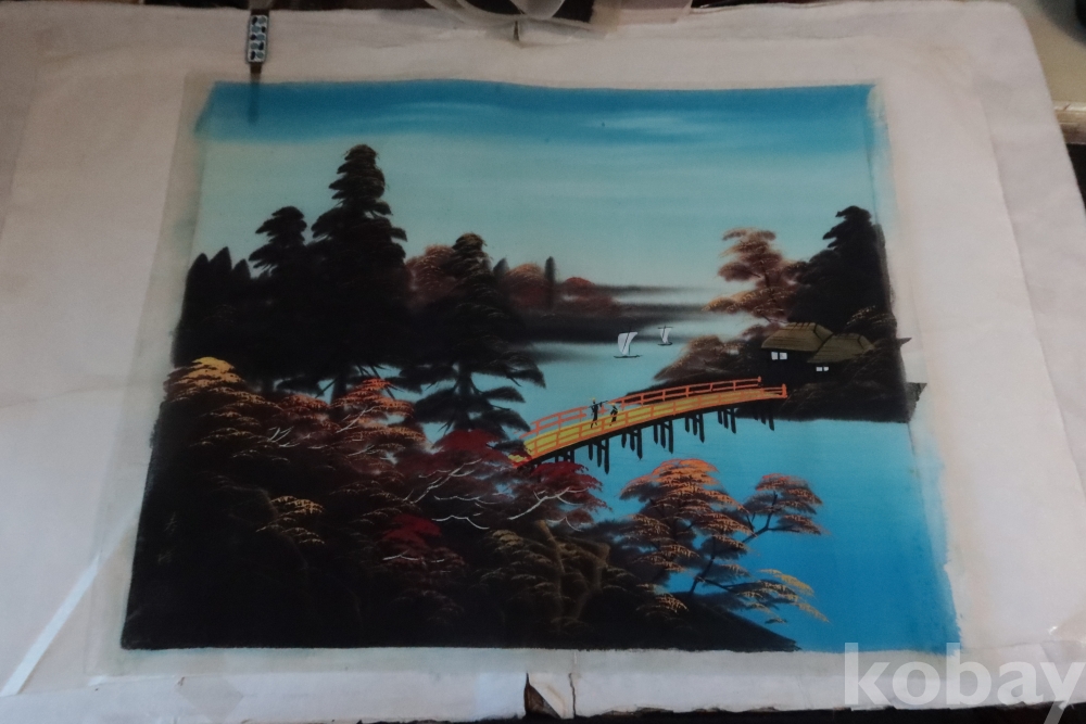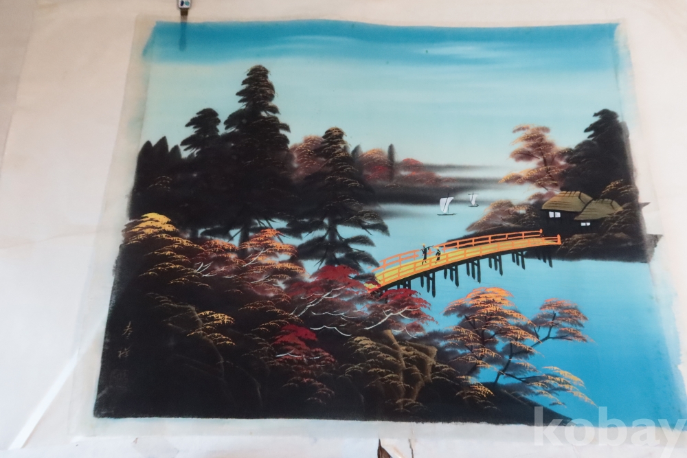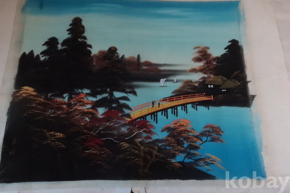 1920/30 대일본 비단 그림 임니다 화가의 낙관을 가진 명화 임니다 멋진 배경 잔잔한 느낌을 가진 명화 임니다