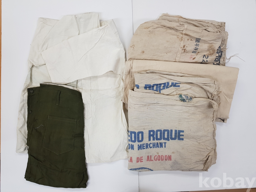 **** [양잠 자료] 1950년대 일본 養蠶(양잠),누에치기 관련 작업복 1벌.누에꼬치 포대 등 총 5점 일괄/천 재질입니다