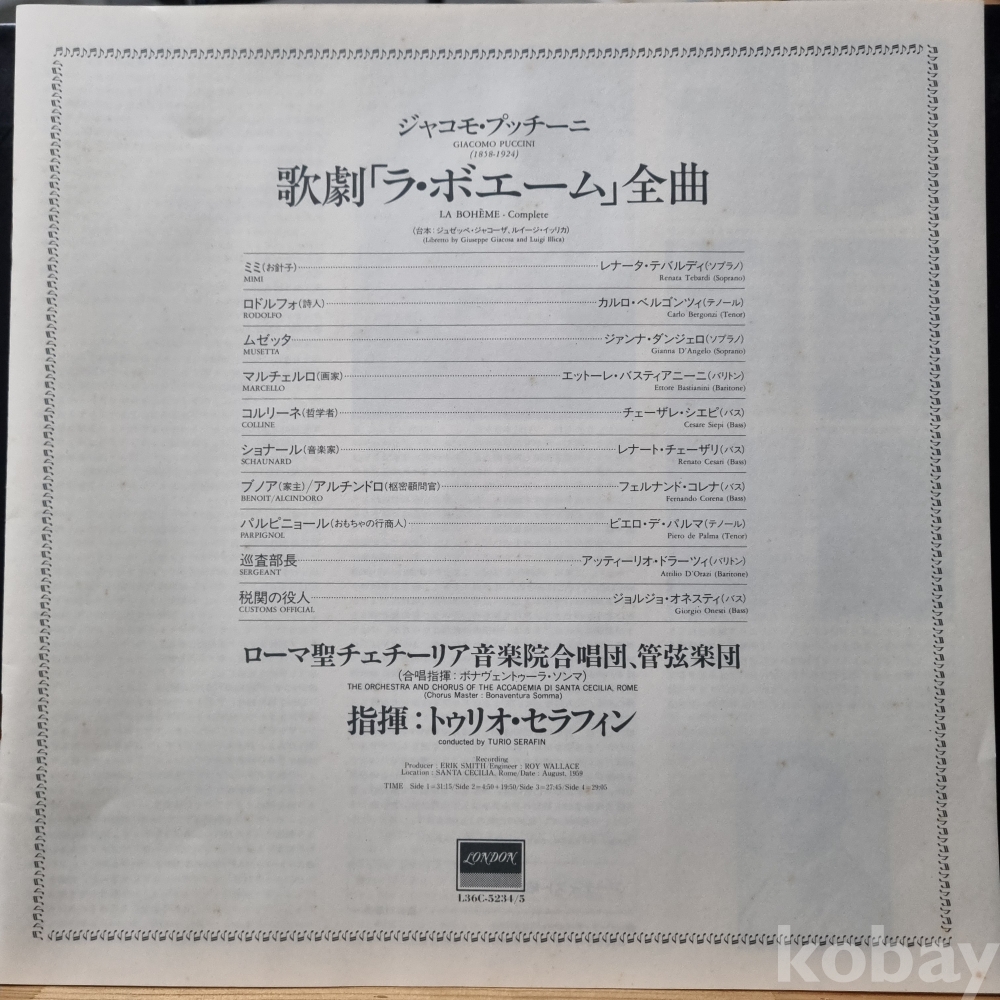 푸치니 라보엠 [La Boheme] 2LP LONDON 일본 박스반