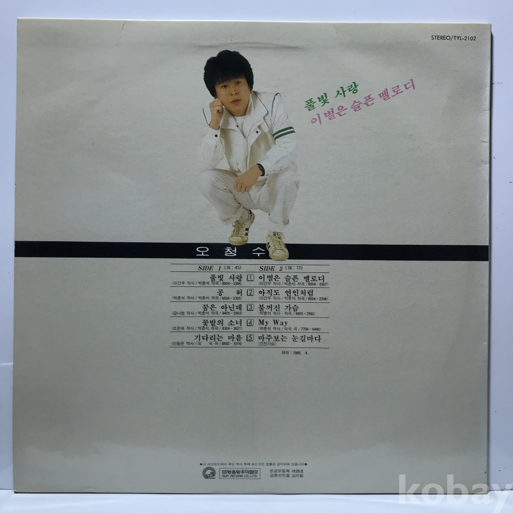 LP 19,050-54 오청수 - 풀빛 사랑/ 이별은 슬픈 멜로디 85 태양 자켓 EX+ 알판 EX