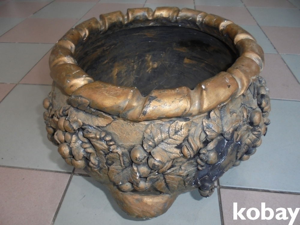 조각예술 전문가가 옹기물동이에 포도을 입체적으로 붙여 예술적으로만든 전시사용소장에좋은