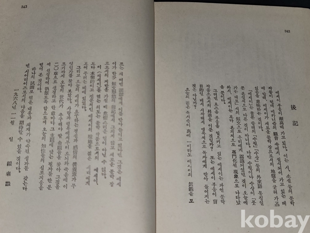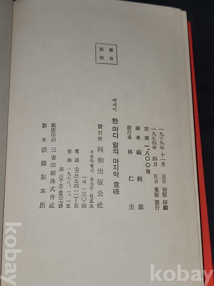 빈티지 세월 감이 느껴지는 1974년 발행 한마디 말의 마지막 의미 : 컬러판 20인 에세이 고서적입니다.