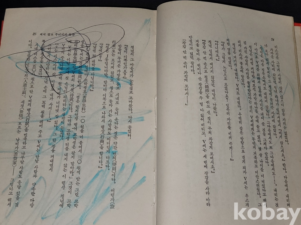 빛바램, 해어짐, 낙서 흔적 등이 있습니다.