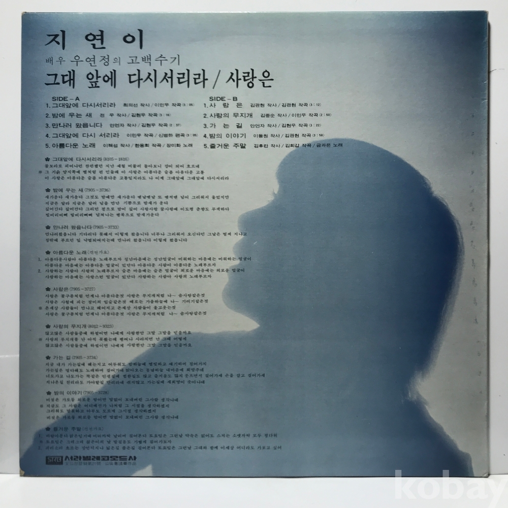 LP 30,940-115 지연이 - 그대앞에 다시서리라 . 자켓 EX+ 알판 EX+ 81 년 국내반