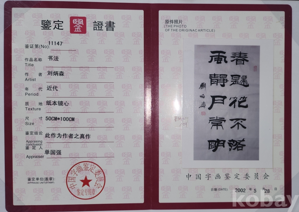 중국서예가 류병삼(劉炳森) 서예품 입니다,