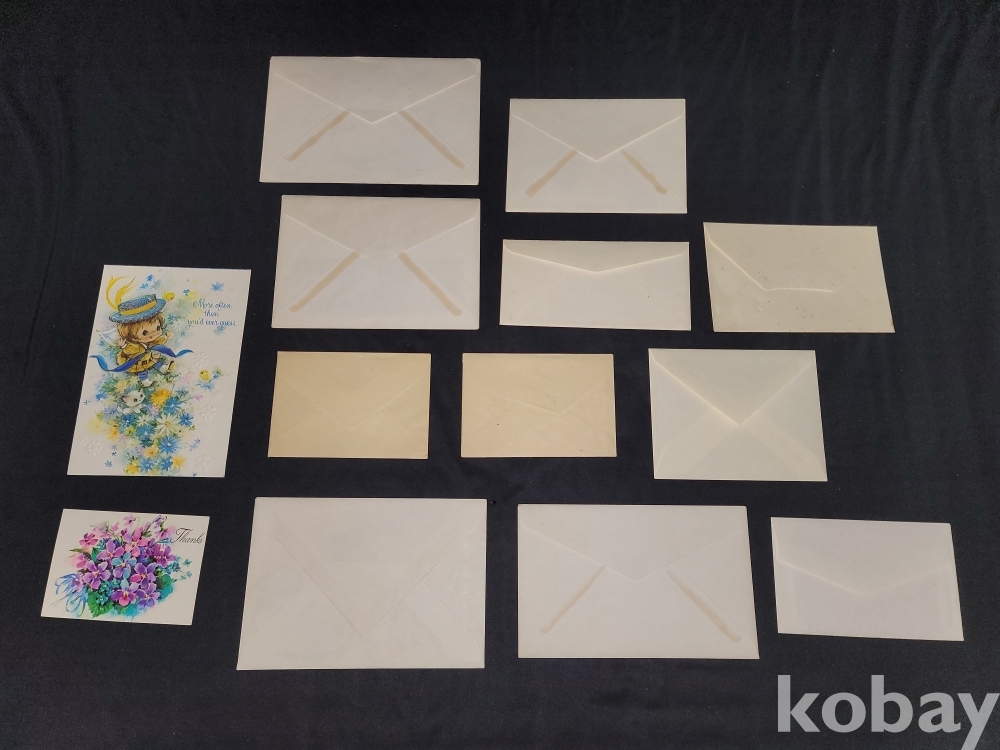 빈티지 세월 감이 느껴지는 미국 등 외국 각종 생일 카드 편지지 봉투 등 13장 일괄입니다.