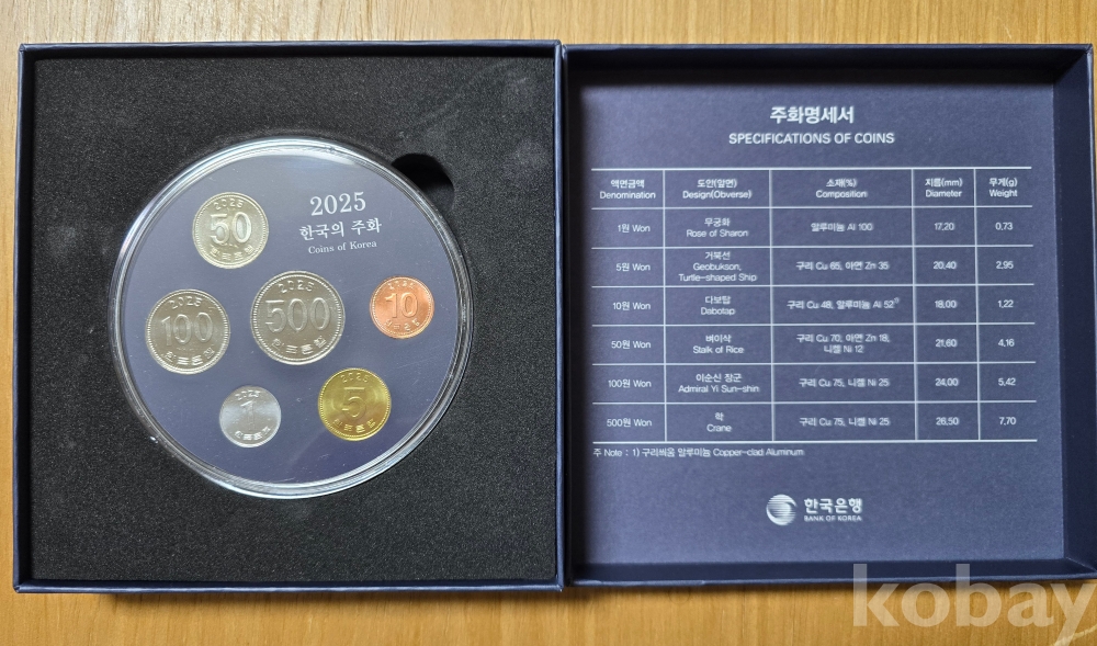 2025년 한국은행 기념주화 + 2018년 5원 주화 (미사용) 입니다