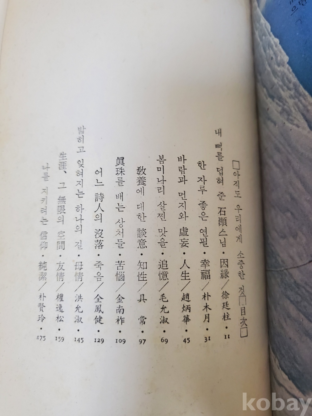 1. 아직도 우리에게 소중한 것, 서정주 외, 청조사, 1979년, 358쪽, 상태 상, 사진 참조