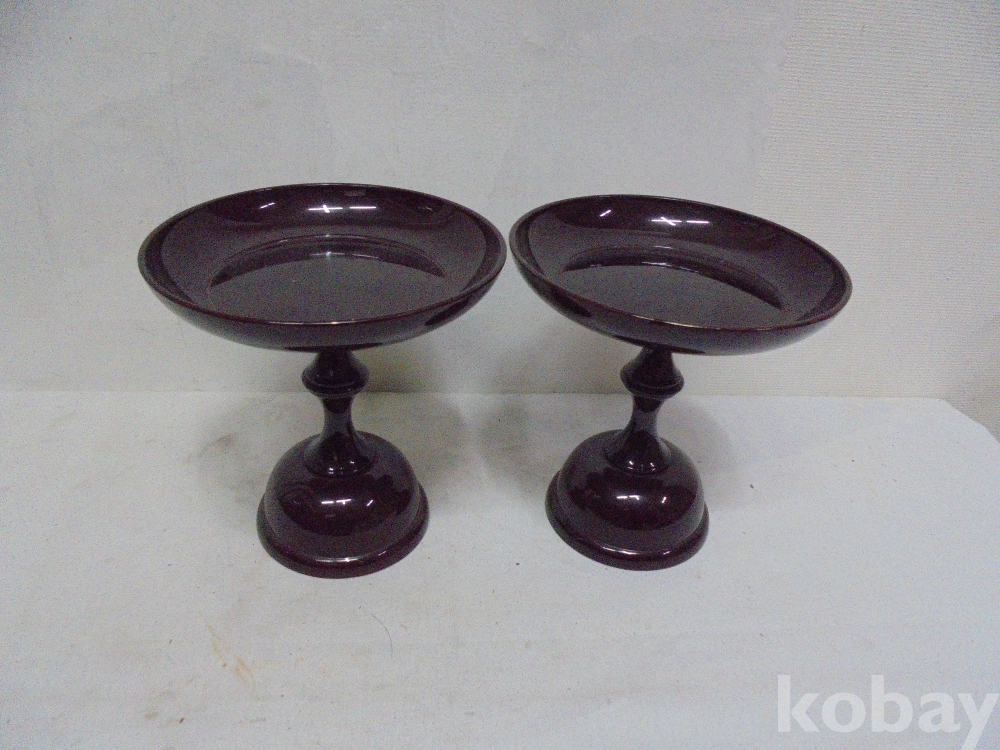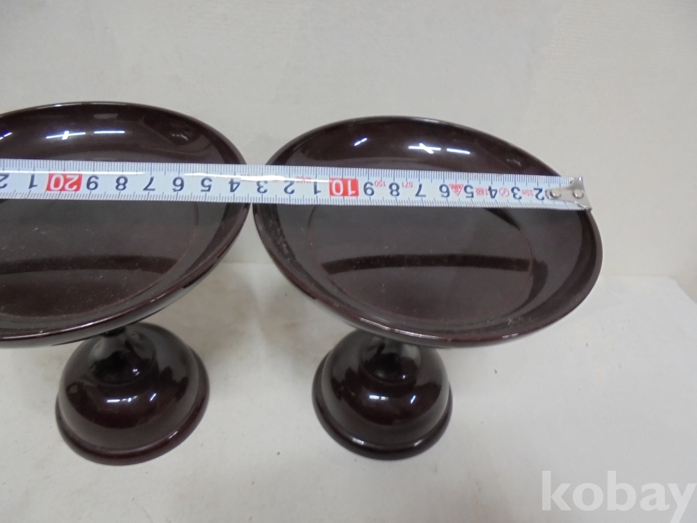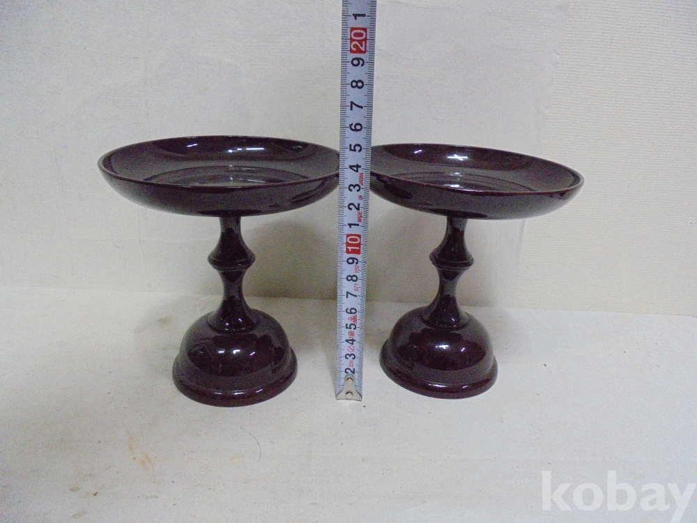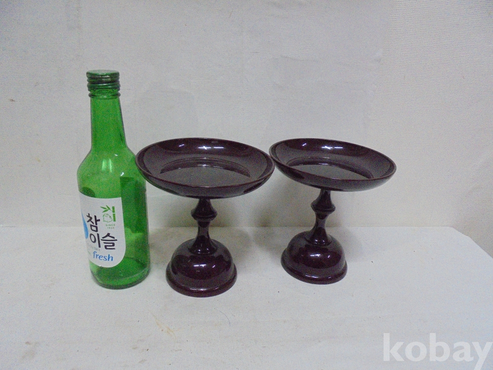 엔틱공예품 ㅡ86ㅡ나무받침대둥근원형두개프라스틱제품
