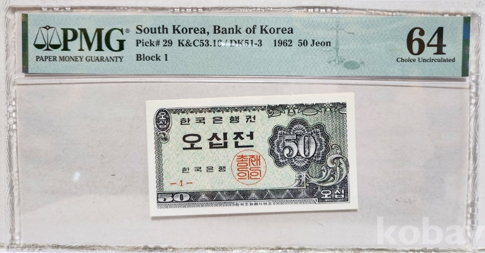 -대한민국 소액권 오십원 PMG 64 등급 그레이딩 입니다.