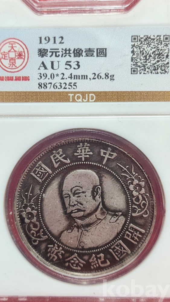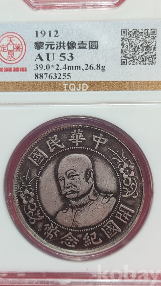1912년 큐알코드(QR CODE)가 함께하는 은색 중화민국 개국기념 밀봉된 상태입니다,
