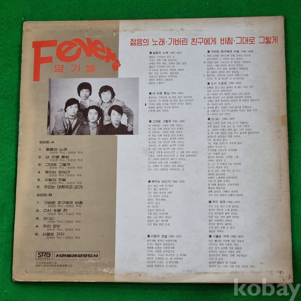 | 자켓상태 | EX : 약간의 마모, 모서리 찢김 존재 | 음반상태 | VG : 생활 기스 다수, 가벼운 노이즈 존재 | 발매정보 | 알수없음 | 가사지여부 | 유 |