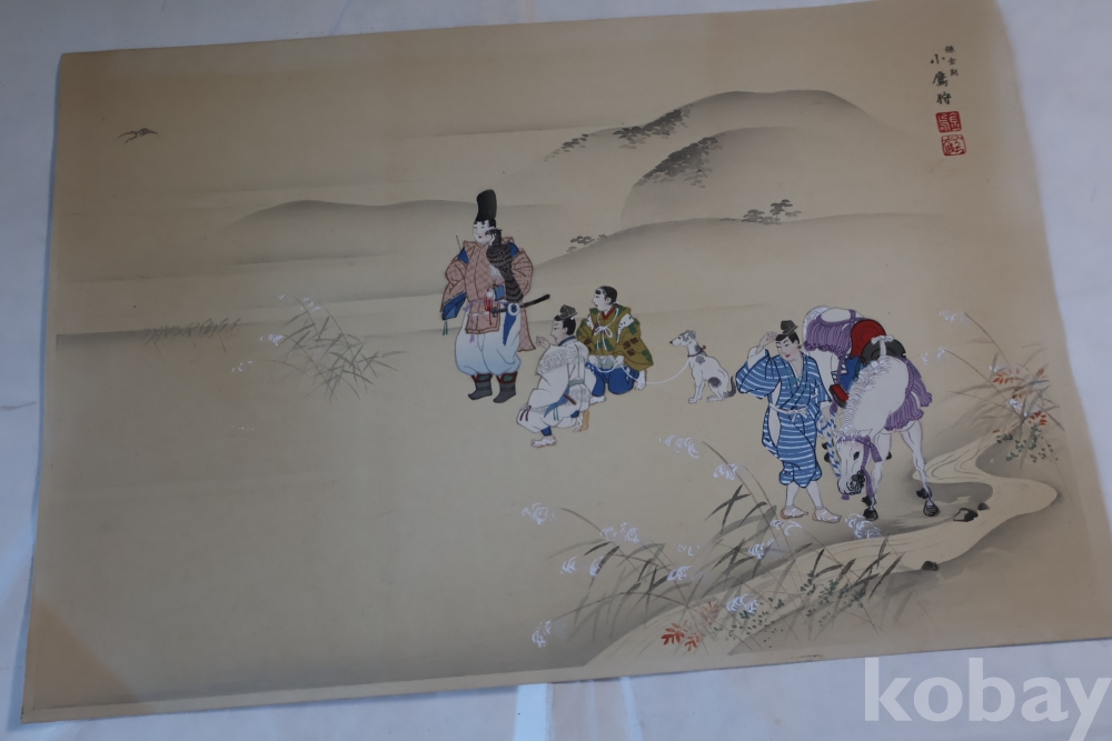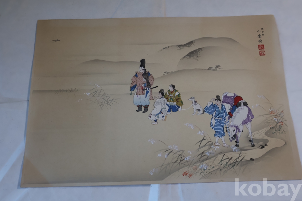 매 사냥 목판화 임니다 일본 고대 풍습을 주제로 한 명화 임니다 소화초기의 명작 임니다