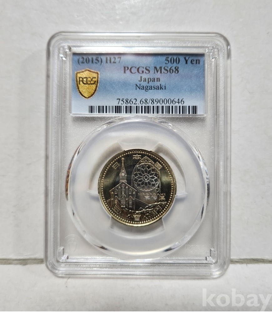 -일본 2015년 지방자치 60주년 기념 나가사키 지역 기념주화 500엔 PCGS68 등급 입니다.