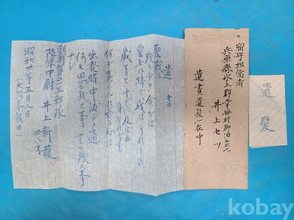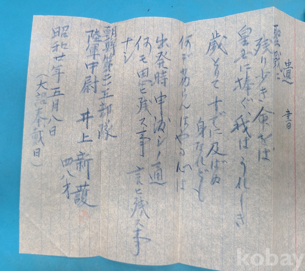 ▶1945년 朝鮮주둔 일본군 장교(육군중위)의 遺書.遺髮