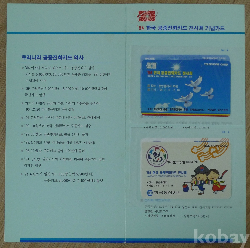 '94 한국 공중전화카드 전시회 기념 전화카드 2종 첩