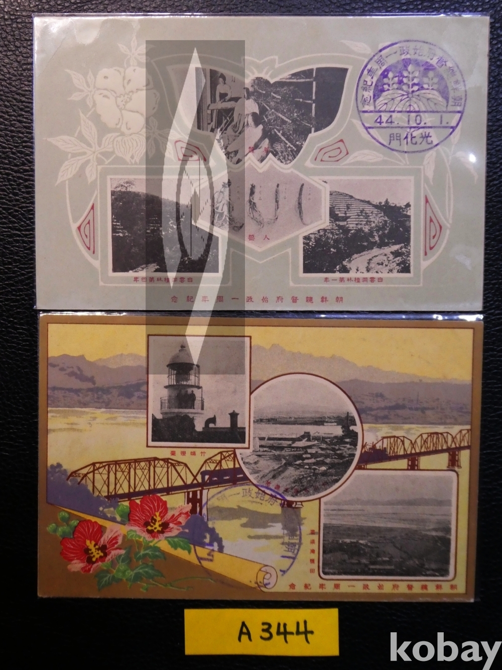 ▣근대한국엽서(진본): 조선총독부 발행 시정1년 기념(1911) 2매 완전 세트.