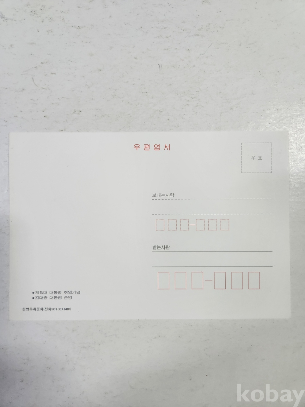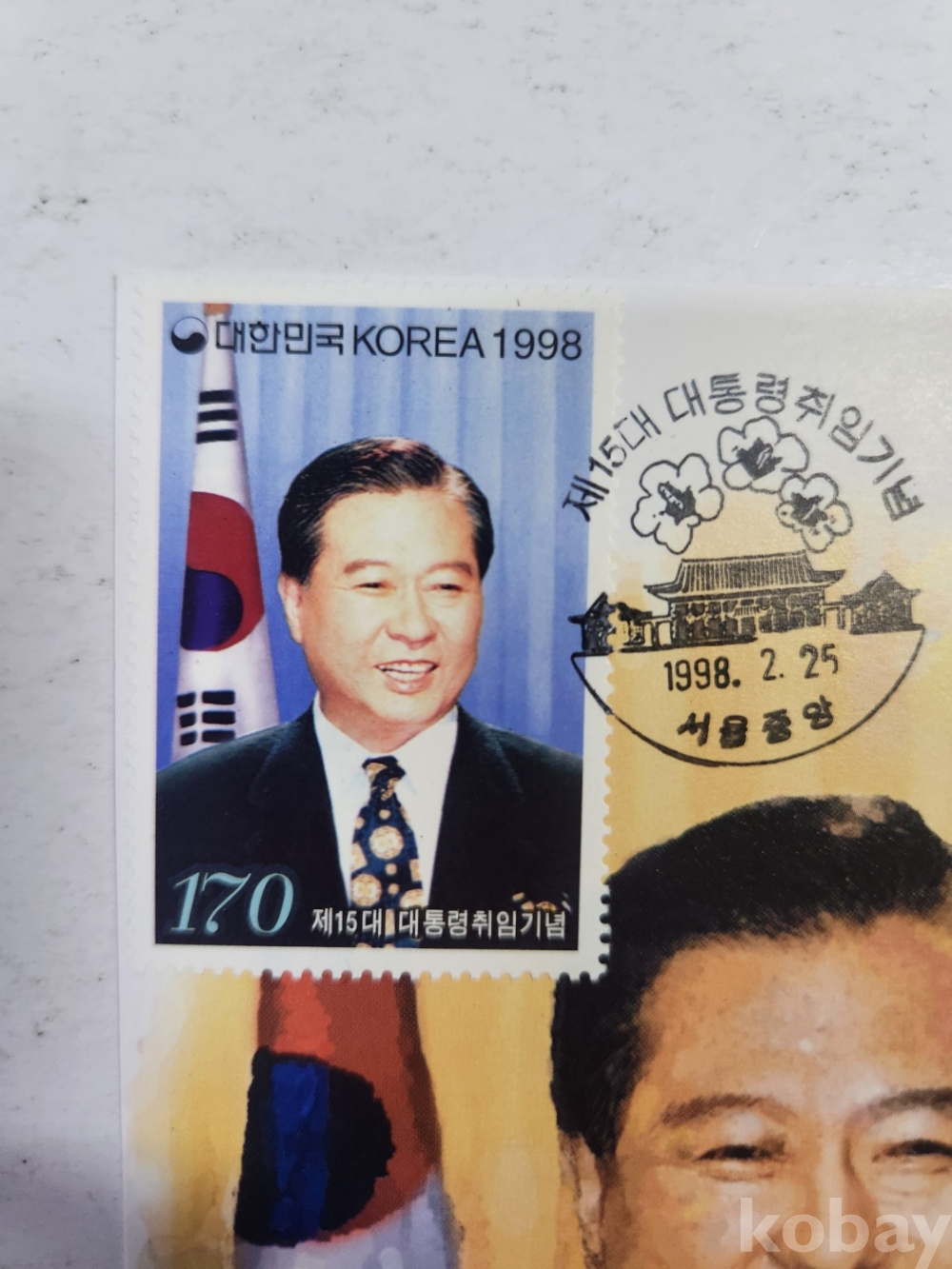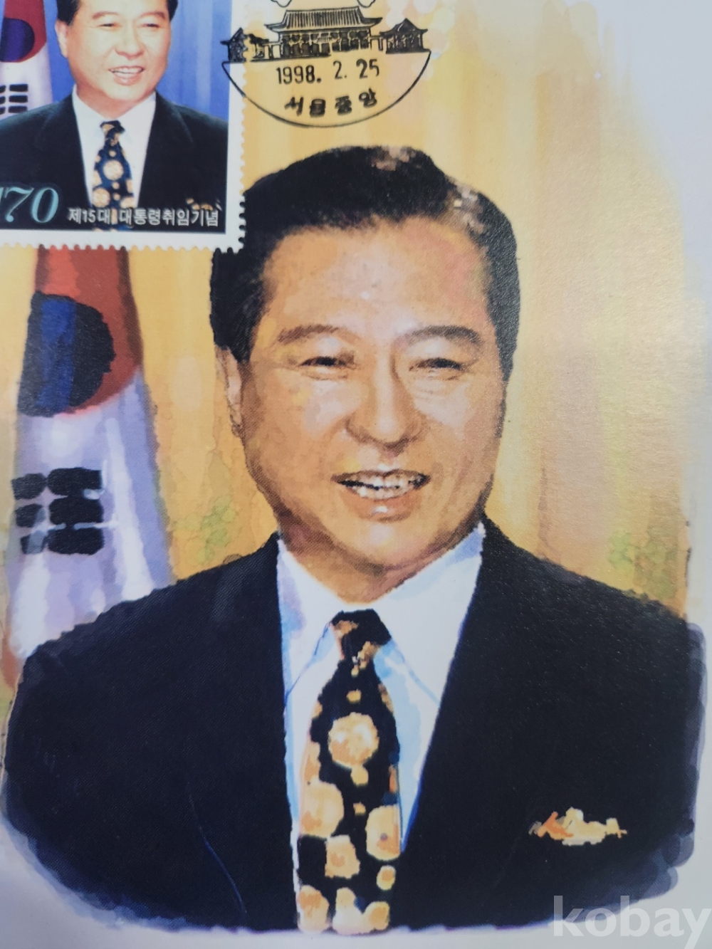 제15대 김대중대통령 취임 기념 우표와 우표가 붙어있는 엽서입니다.