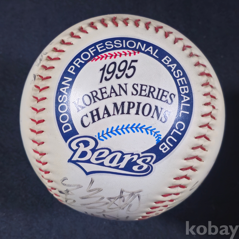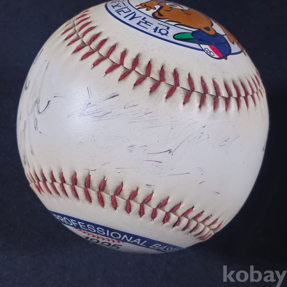 (((프로야구/야구공/싸인볼))) 추억의 오비베어스 1995 한국시리즈 챔피언 기념 박철순/김인식감독등 9명 친필싸인 대형 우승구 (대형구)