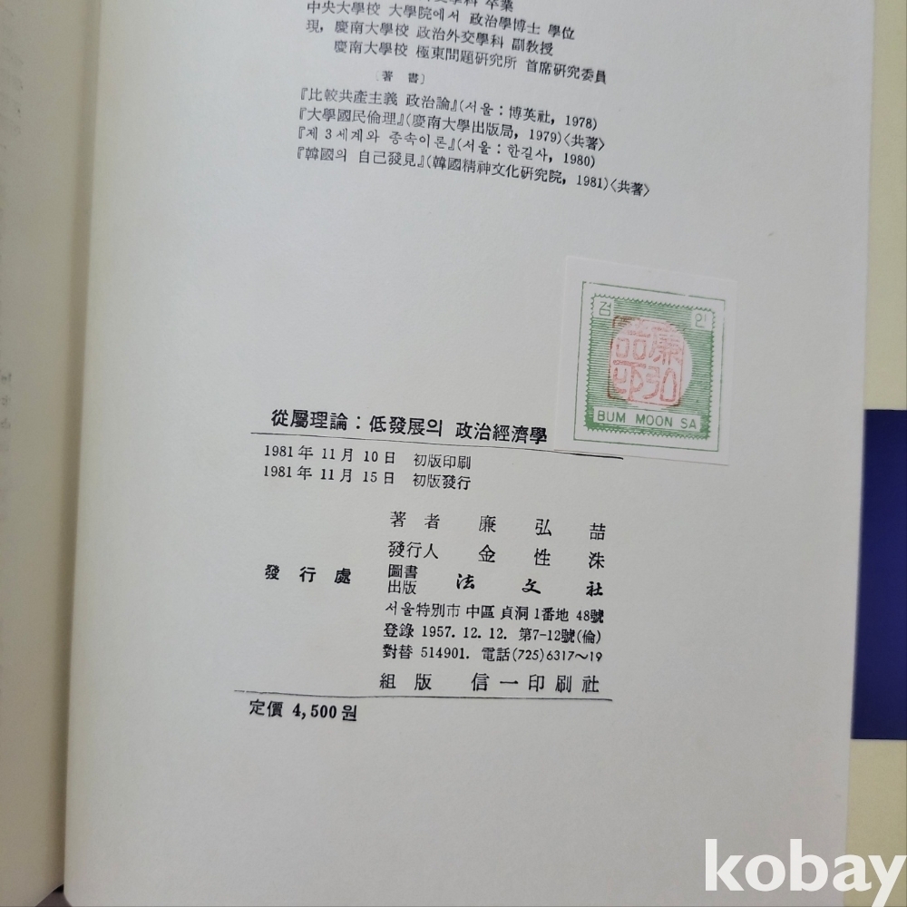 [천원경매] 1981년 법문사 발행 정치경제 관련 도서입니다.