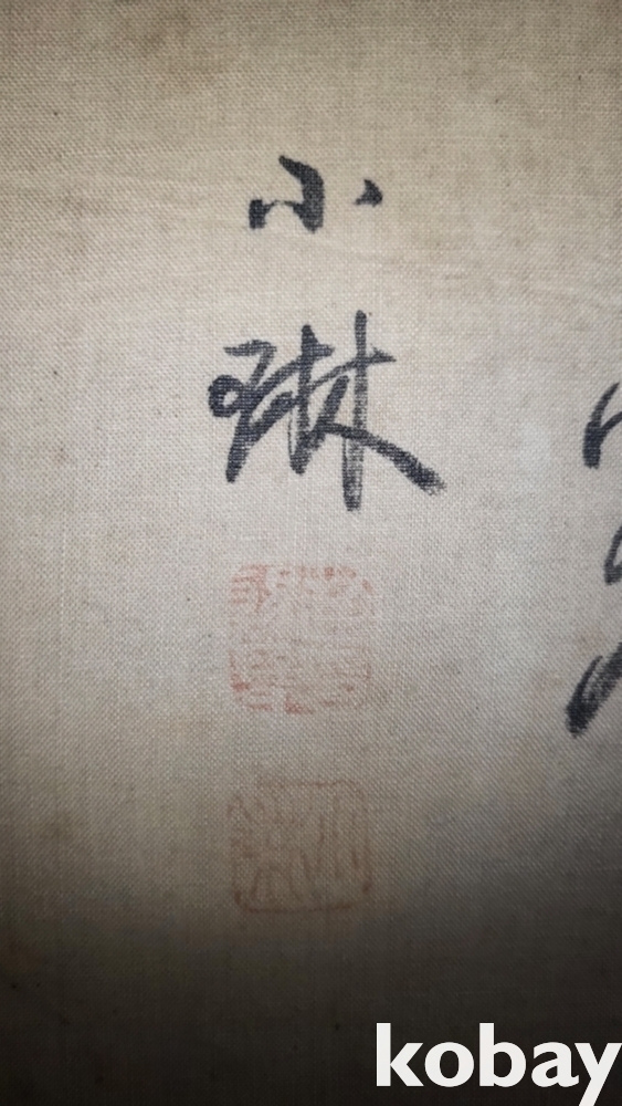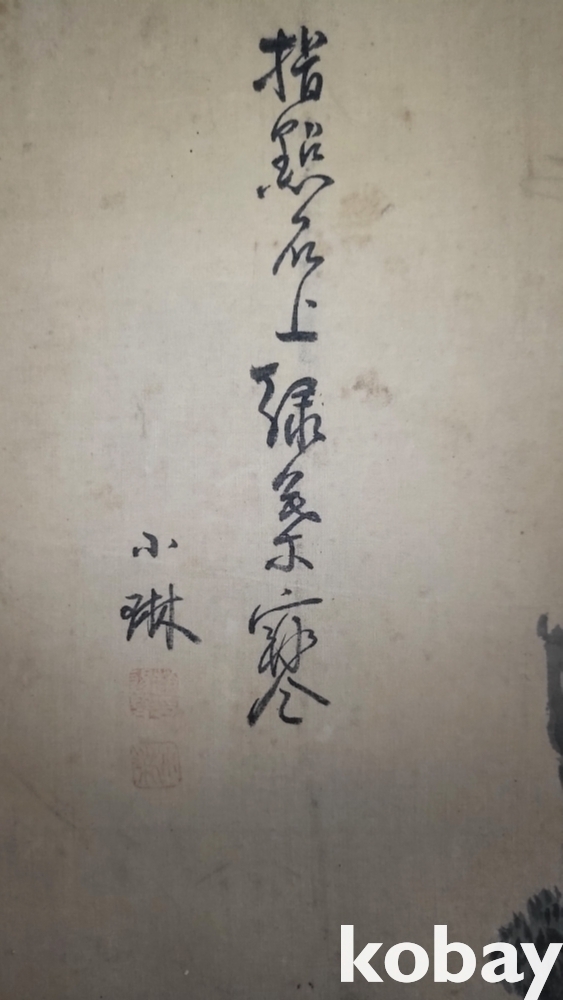 소림(小琳) 수결이 보이는 비단에 채색한 신선도입니다,