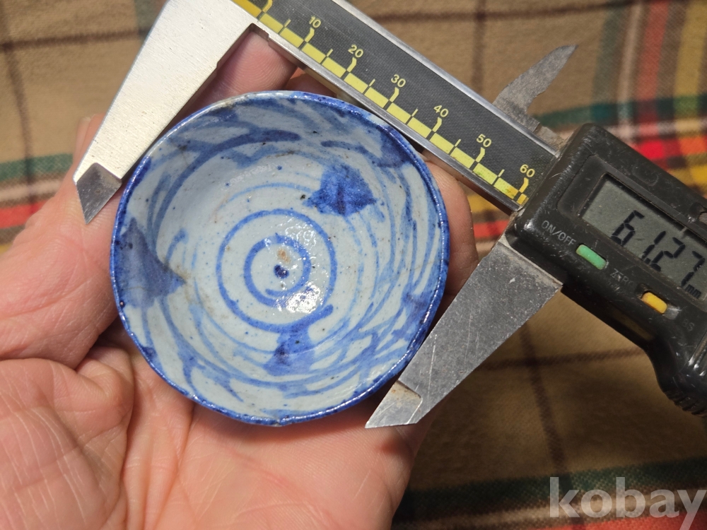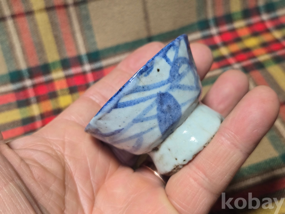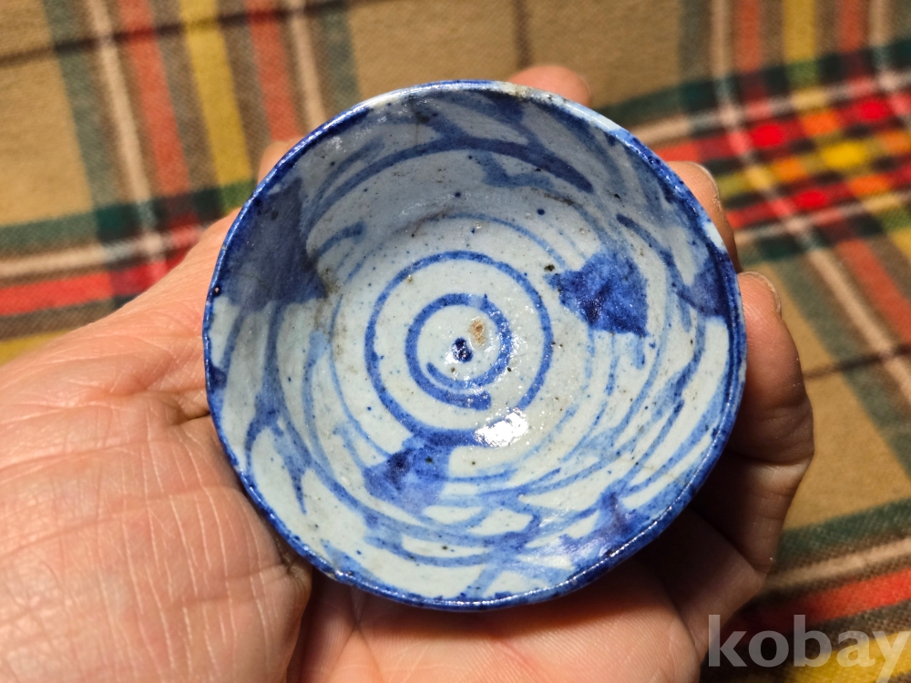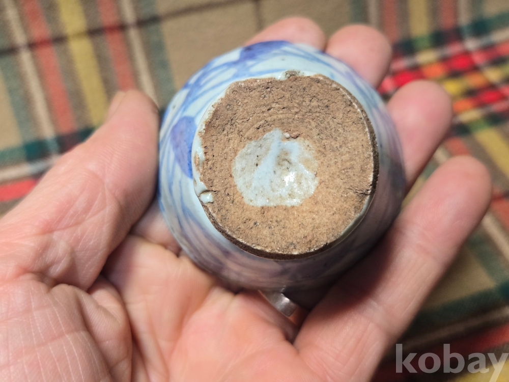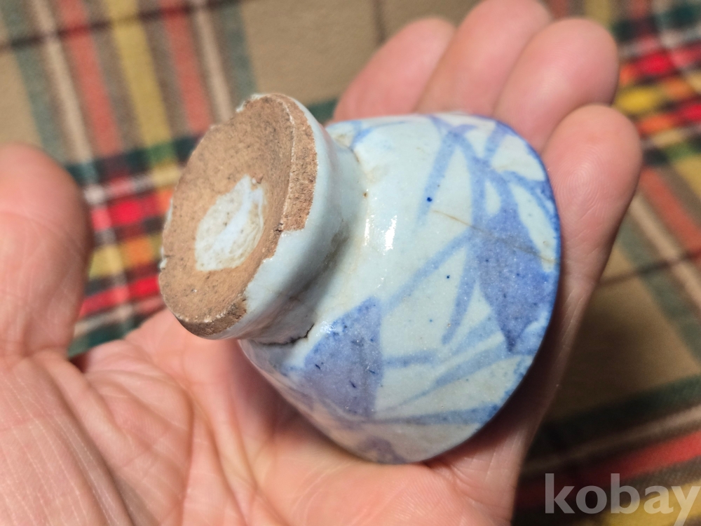 <투킴스> 중국 골동 찻잔, 술잔 - 고청화 초화문 굽높은잔#4 외면실유