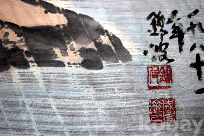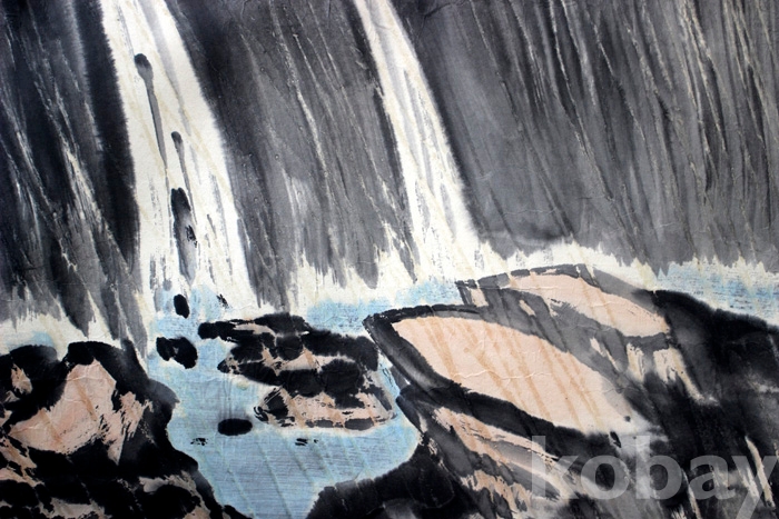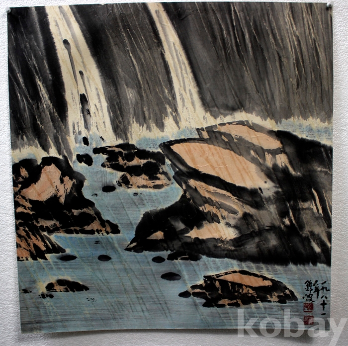 국무총리상을 수상했던 錦波(금파) 성흥제의 작품 - 비오는 날의 폭포 풍경
