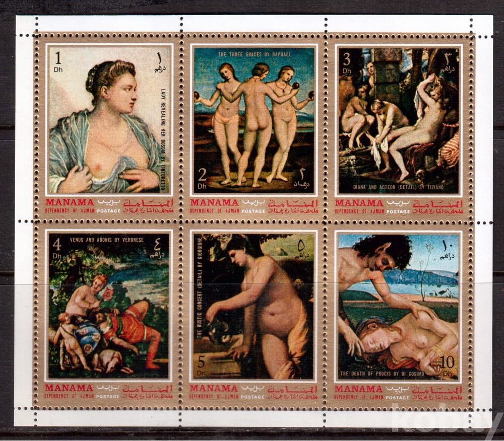 (누드명화) Manama (마나마) 틴토레토외 누드화 sheet of 6 MNH