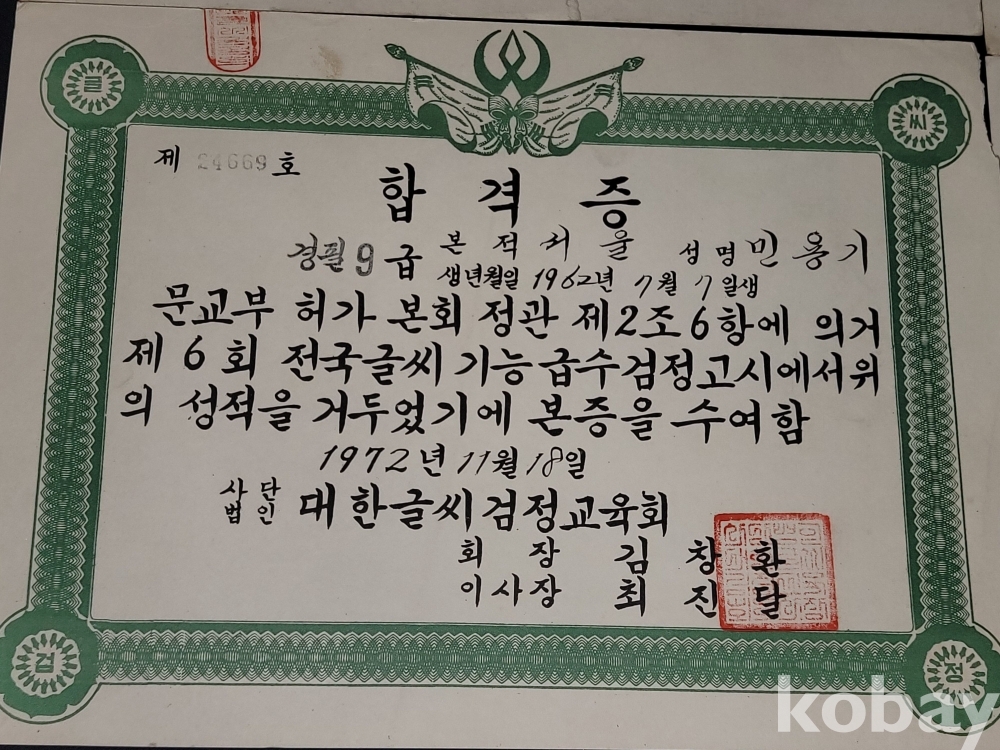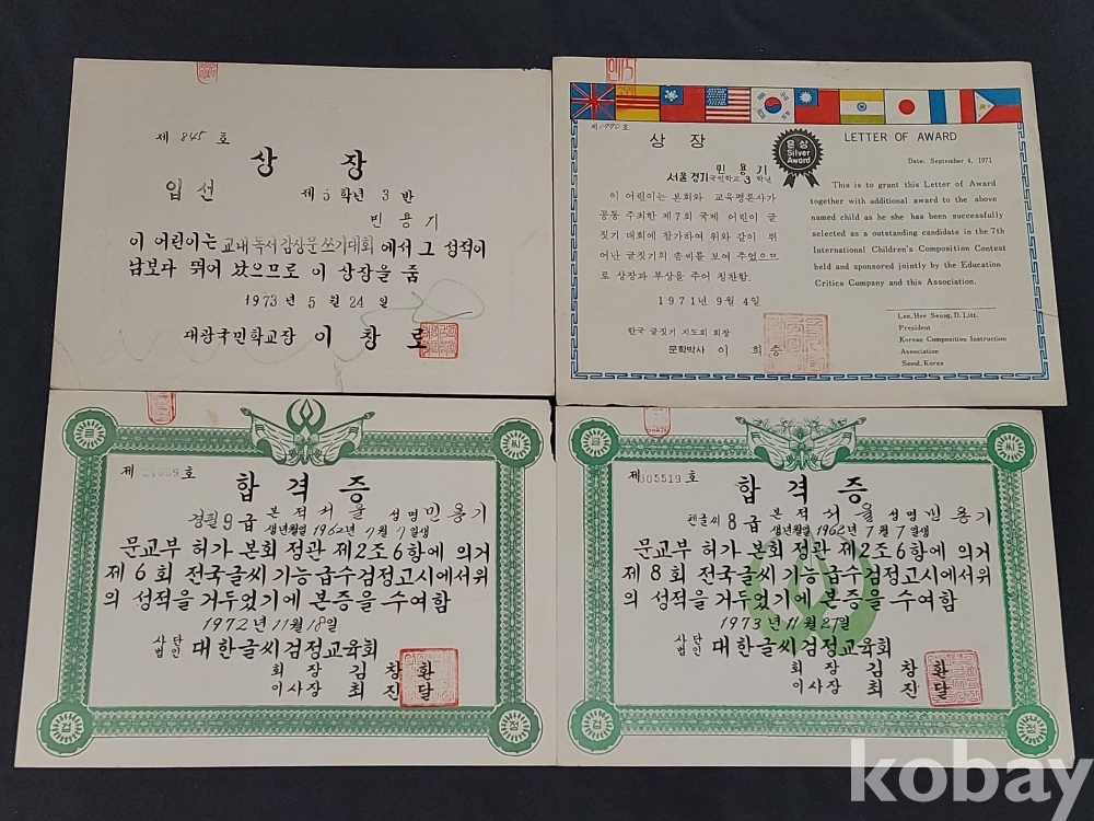 빈티지 세월 감이 느껴지는 70년대 각종 상장 4장 일괄입니다.