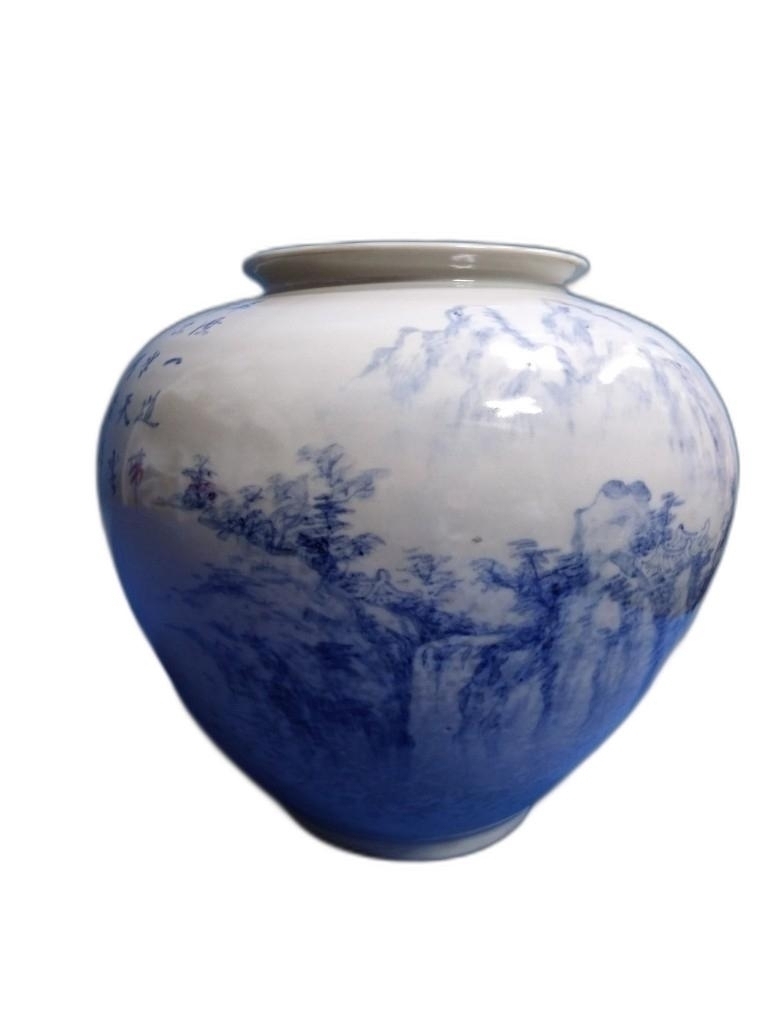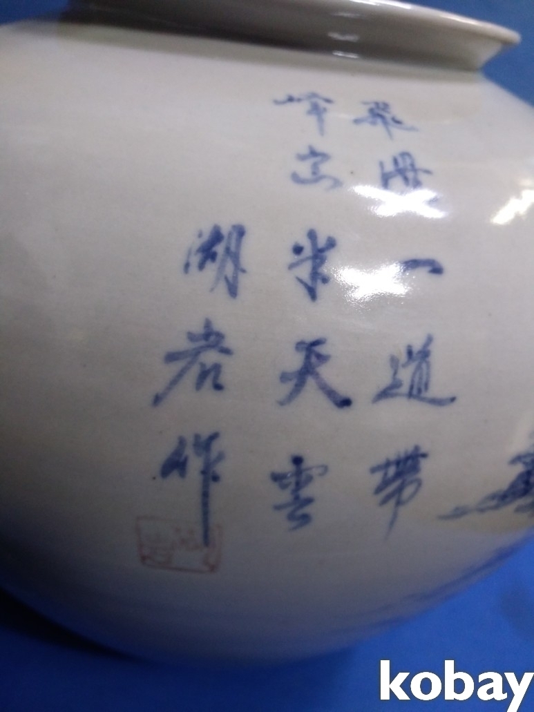 아름다운 산수 풍경이 멋있게 표현된 도자기 입니다.