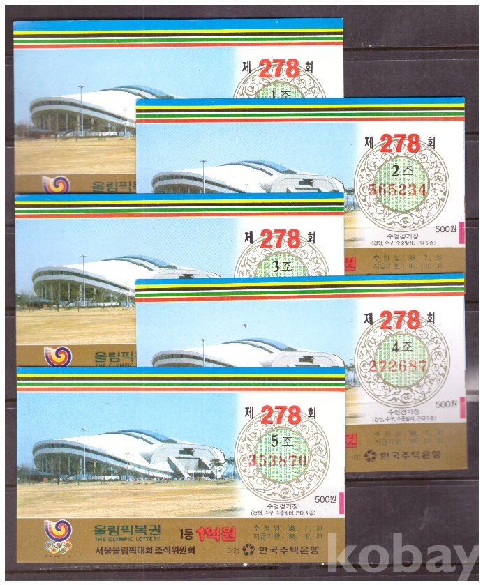 (서울올림픽) 1988 서울올림픽복권 제278회 1,2,3,4,5조 수영경기장(경영, 수구, 수중발레, 근대5종)