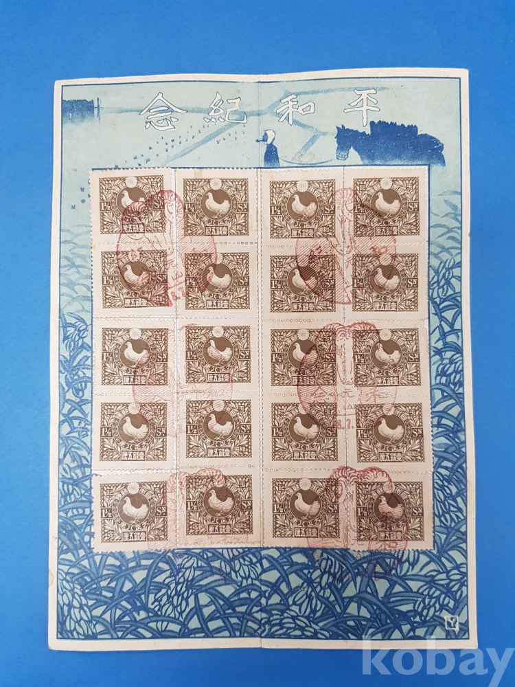 **** 우편절수저금대지/1919.7.8/평화기념 우표 20매 첩부