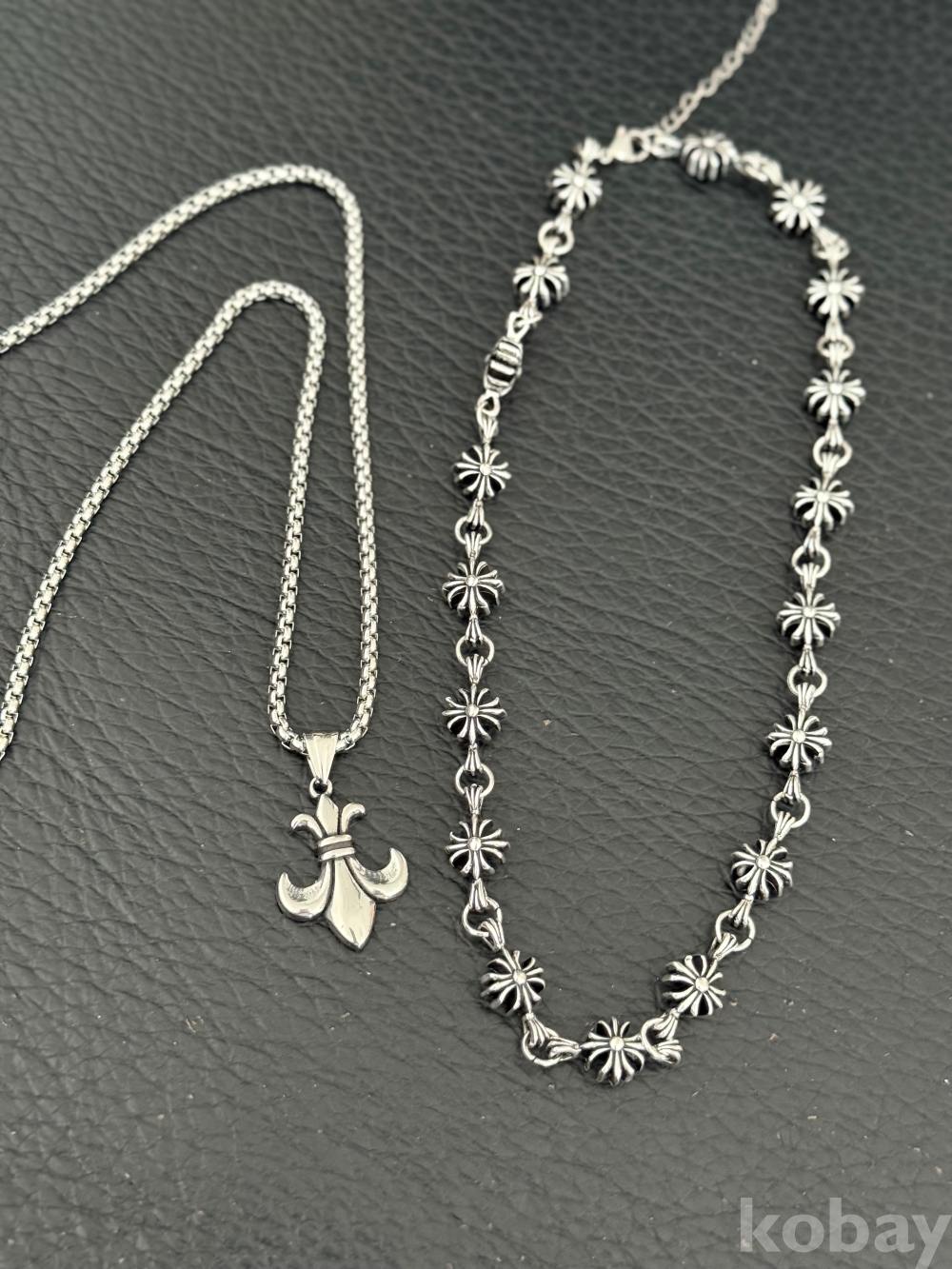 오른쪽 목걸이는 짧은편이라 여성도 가능해보입니다