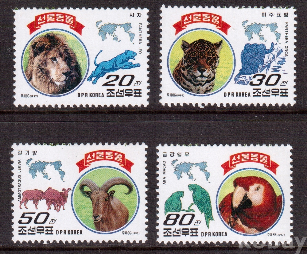 (동물) 북한 1997.10.15 선물동물 4완 MNH