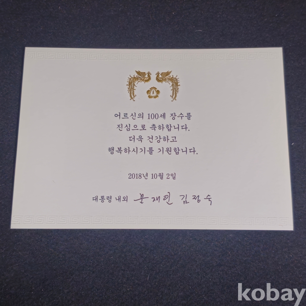 (((대통령자료))) 무궁화와 봉황 금박 대통령내외 문재인, 김정숙 인쇄 서명담긴 카드 (2018년)