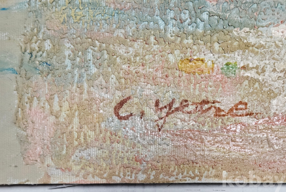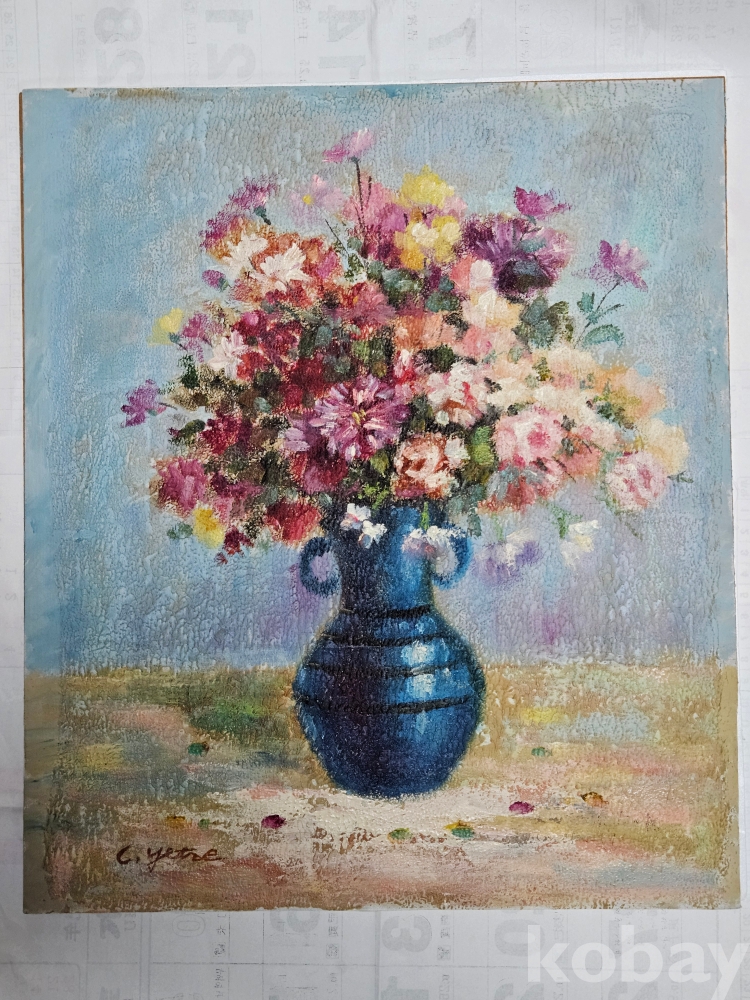하드보드 위 켄바스 천 접착 후 Oil painting 그림 우측 하단 서명