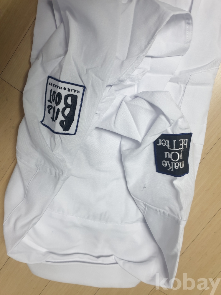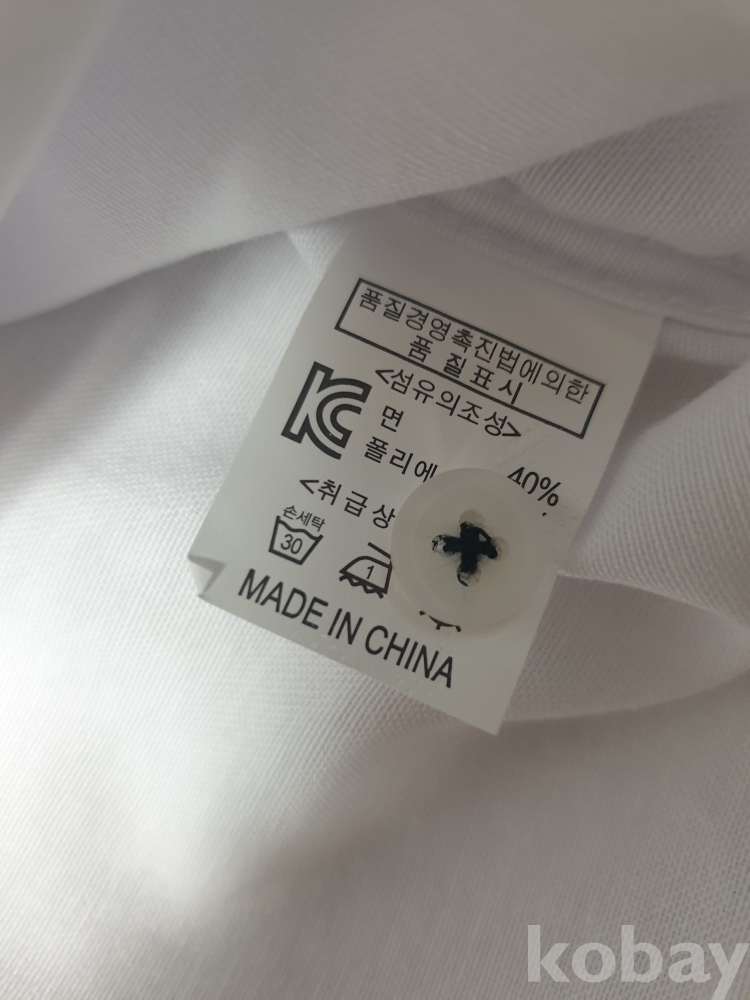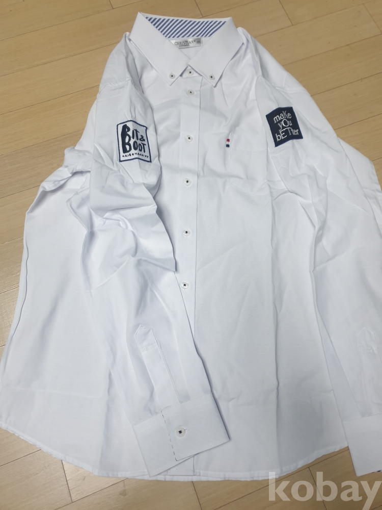 [천원경매] 1-353 소매에 와펜있는 흰색 셔츠(미착용제품이지만 보관상 이슈로 뒷면에 오염있음, 105사이즈, 가슴단면 52cm, 길이 70cm)