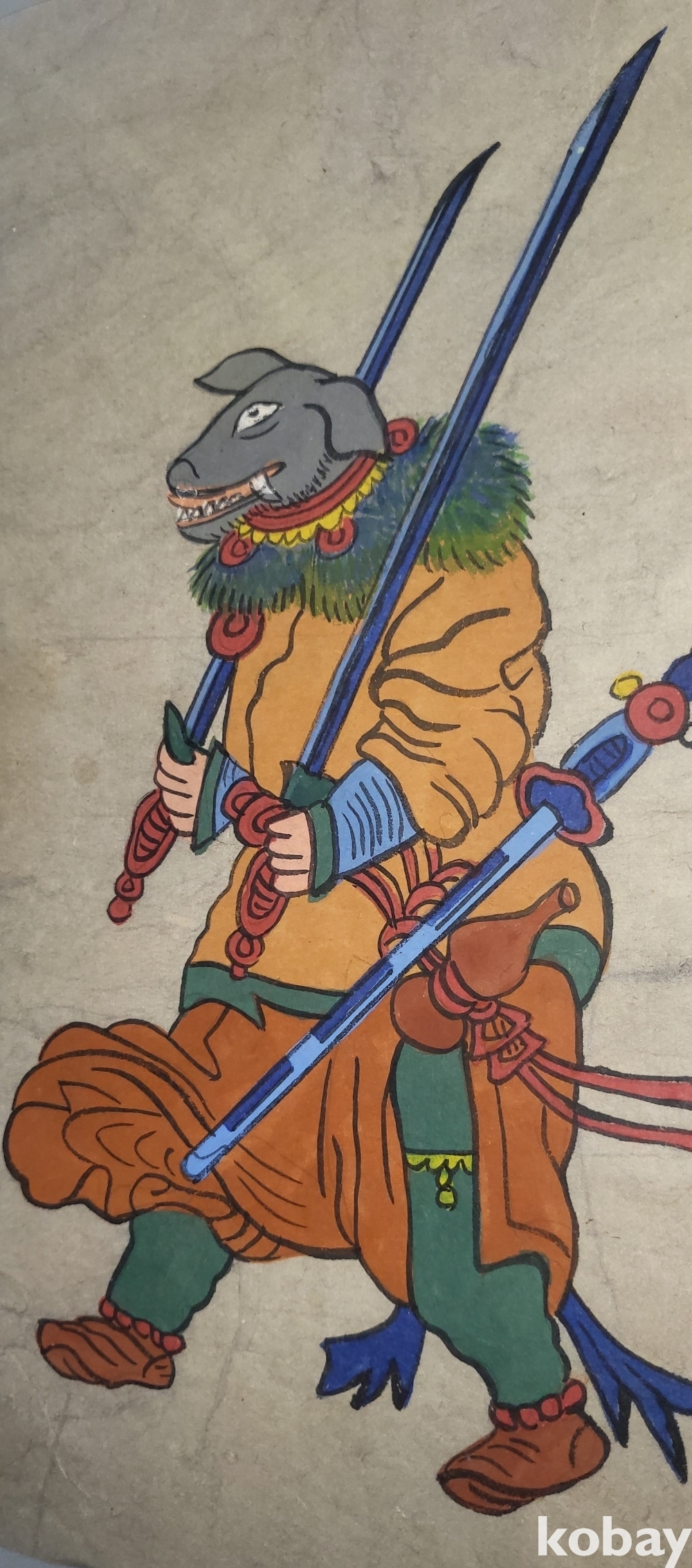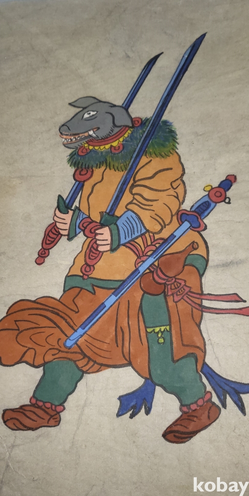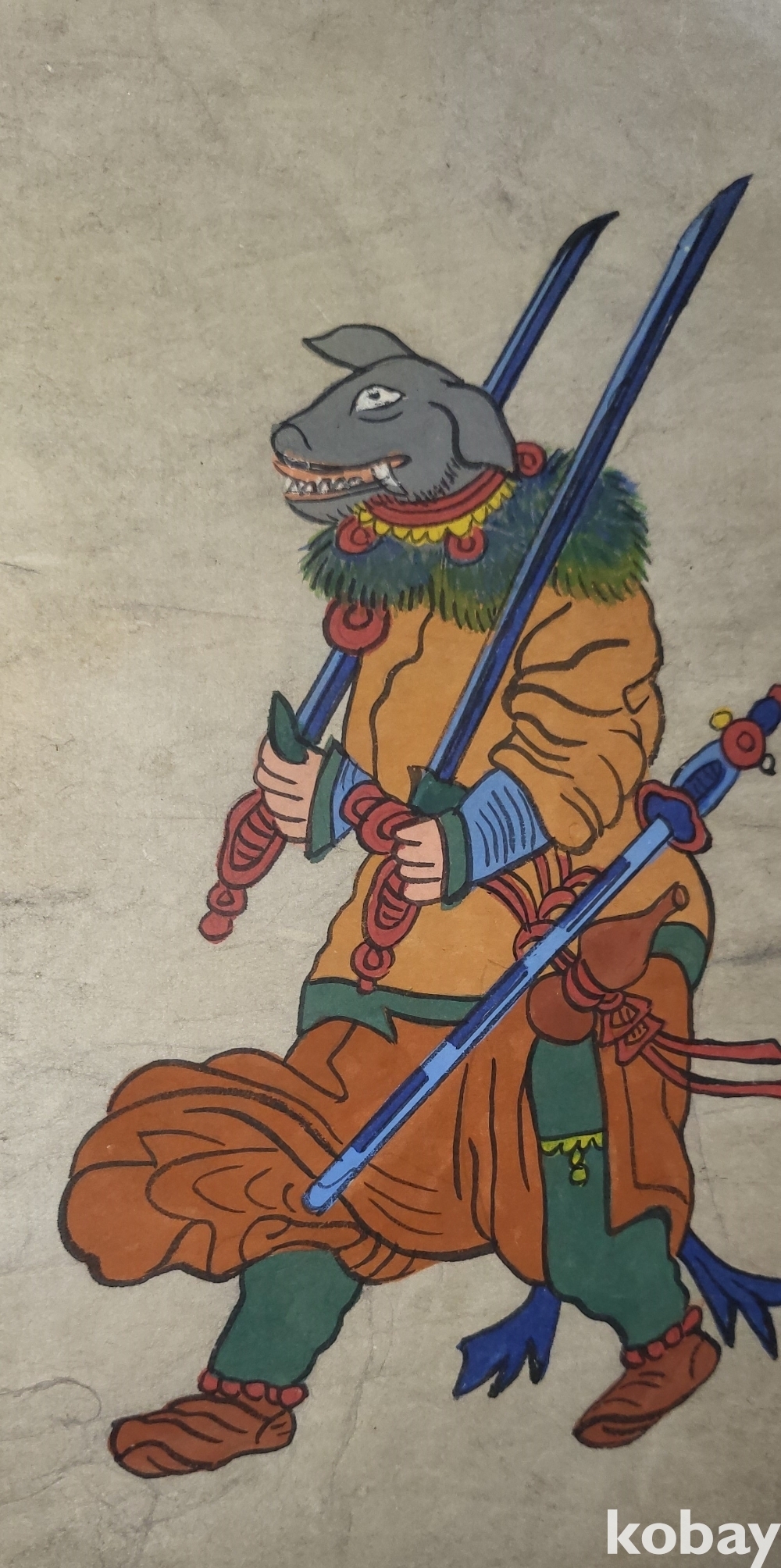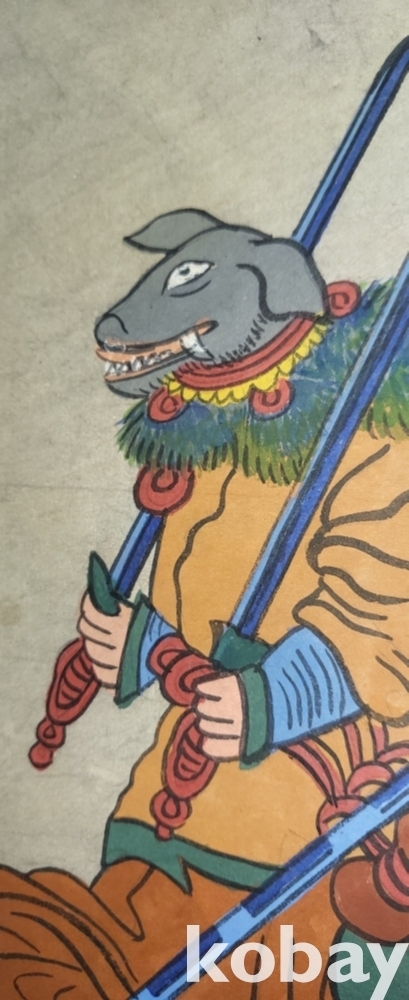 구한말 연대 갖춘 장지 바닥에 당채로 그려진 동물 형상 그림입니다,