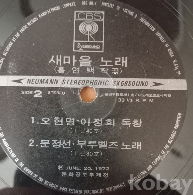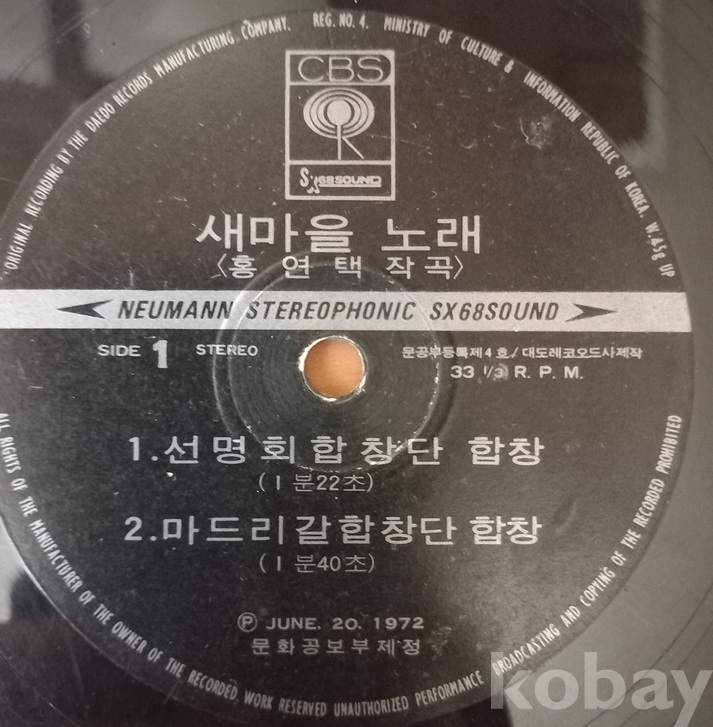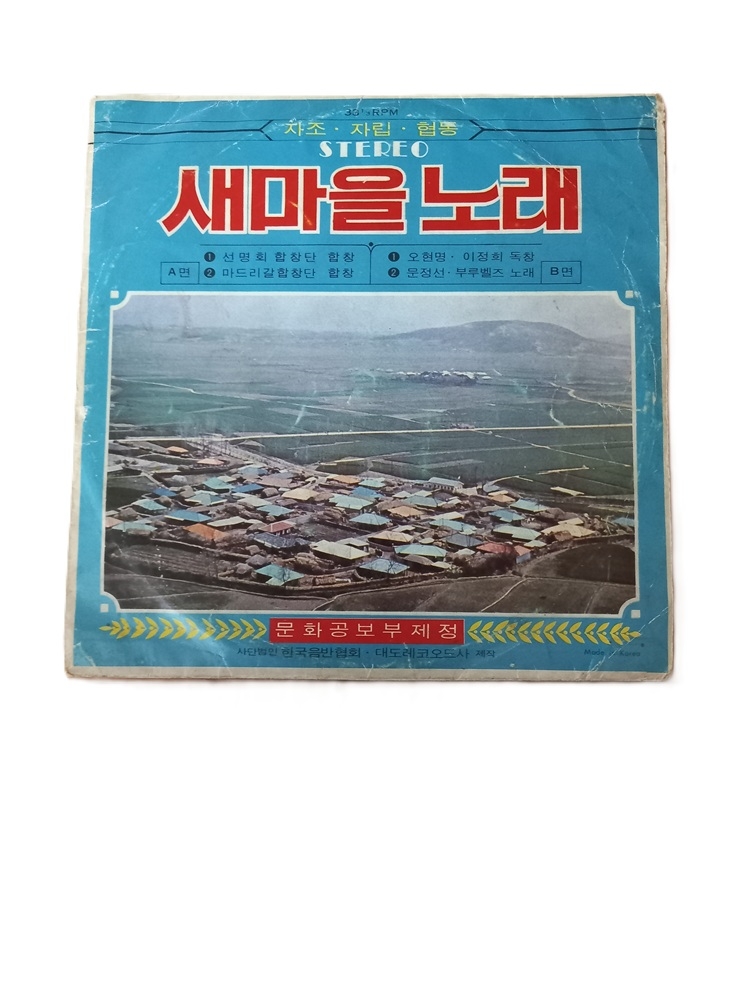 ** 이 음반은 박대통령의 대표적인 음반이랄수 있고.. 아니 원조/오리지날이랄수 있지요. 박대통령이 직접 작사,곡하고 문화공보부에서 7인치 싱글반으로 만들었지요. 다만 쟈켓과 디스크에는 작사,곡자를 박정희가 아닌 홍연택으로 적은건 왠일?인지 모르겠습니다. 전국에 관공서 마당에 매달린 확성기에서 아침 일과 시작과 함께 이 노래가 울려퍼졌지요. 그리고 이 노래가 지독하게 이어지던 오쳔년 보리고개로 대표되던 기아를 벗는- 5000년 한민족의 거대한 용틀음이었읍니다. 세계는 전후 독일에서 이룩한 라인강의 기적에 비교, 한강의 기적이라 하고. 나도 그 시대를 관통하면서 살아 기억도 너무 많고.. 지금은 그 추억속을 더듬으며 살고. 쟈켓 사진속의 새마을 동네와 합창단 사람들- 다 생존해 어느 하늘아래에서 나처럼 옛날을 추억하겠지요. 내용과 상태는 사진을 참고바랍니다 아주 여러장을 올렸읍니다.