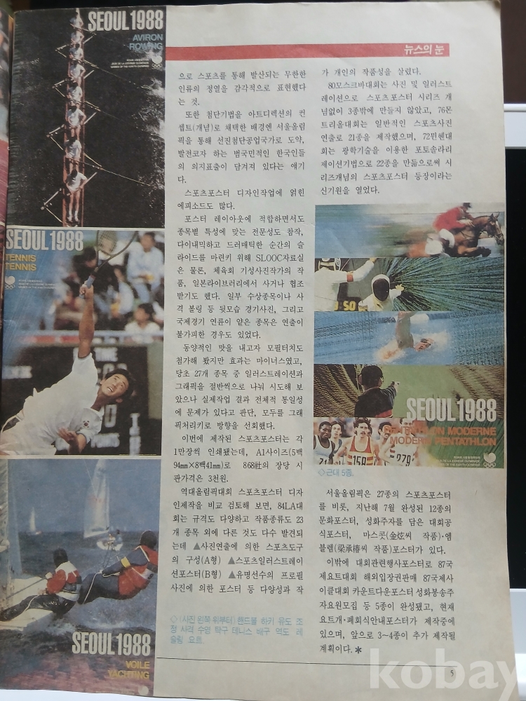 88년 올림픽을 앞두고 24개 정식종목의 포스터를 비중있게 개재.