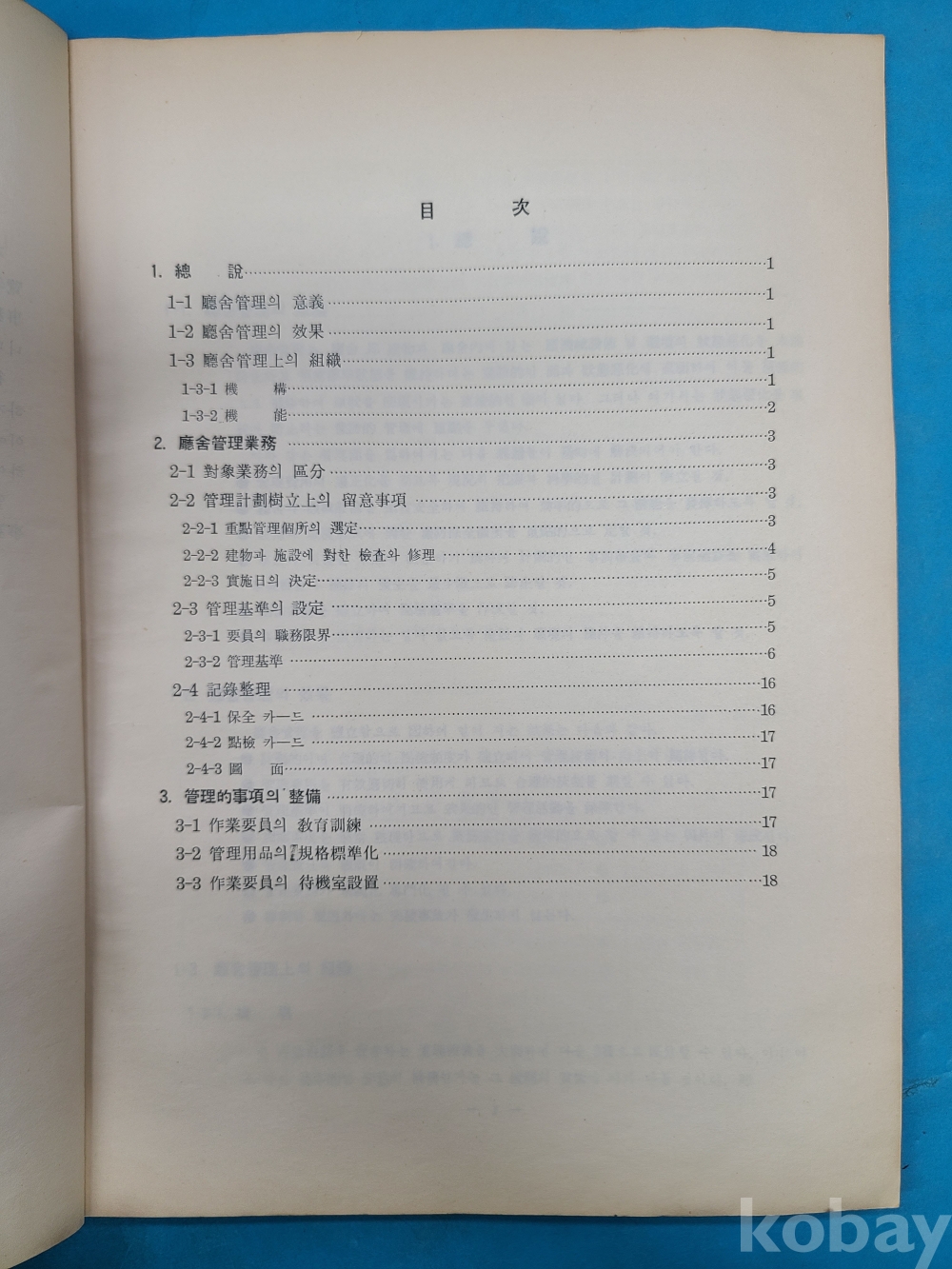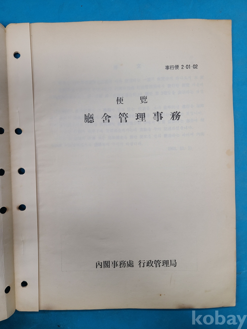 1963년 便覽 廳舍管理事務*총설,청사관리업무,관리적사항의 정비 로 구성됨 내각사무처 행정관리국 발행,18쪽
