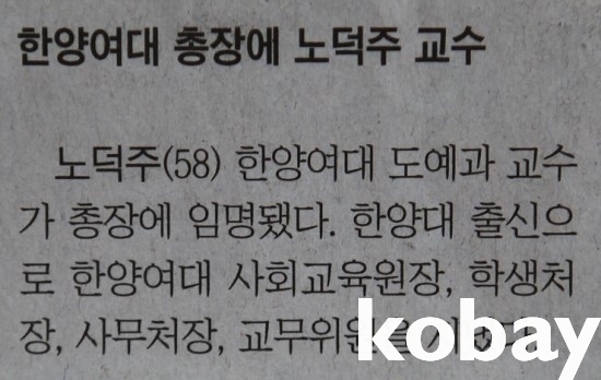 2012년 9월-현재, 한양여자대학 제5대 총장