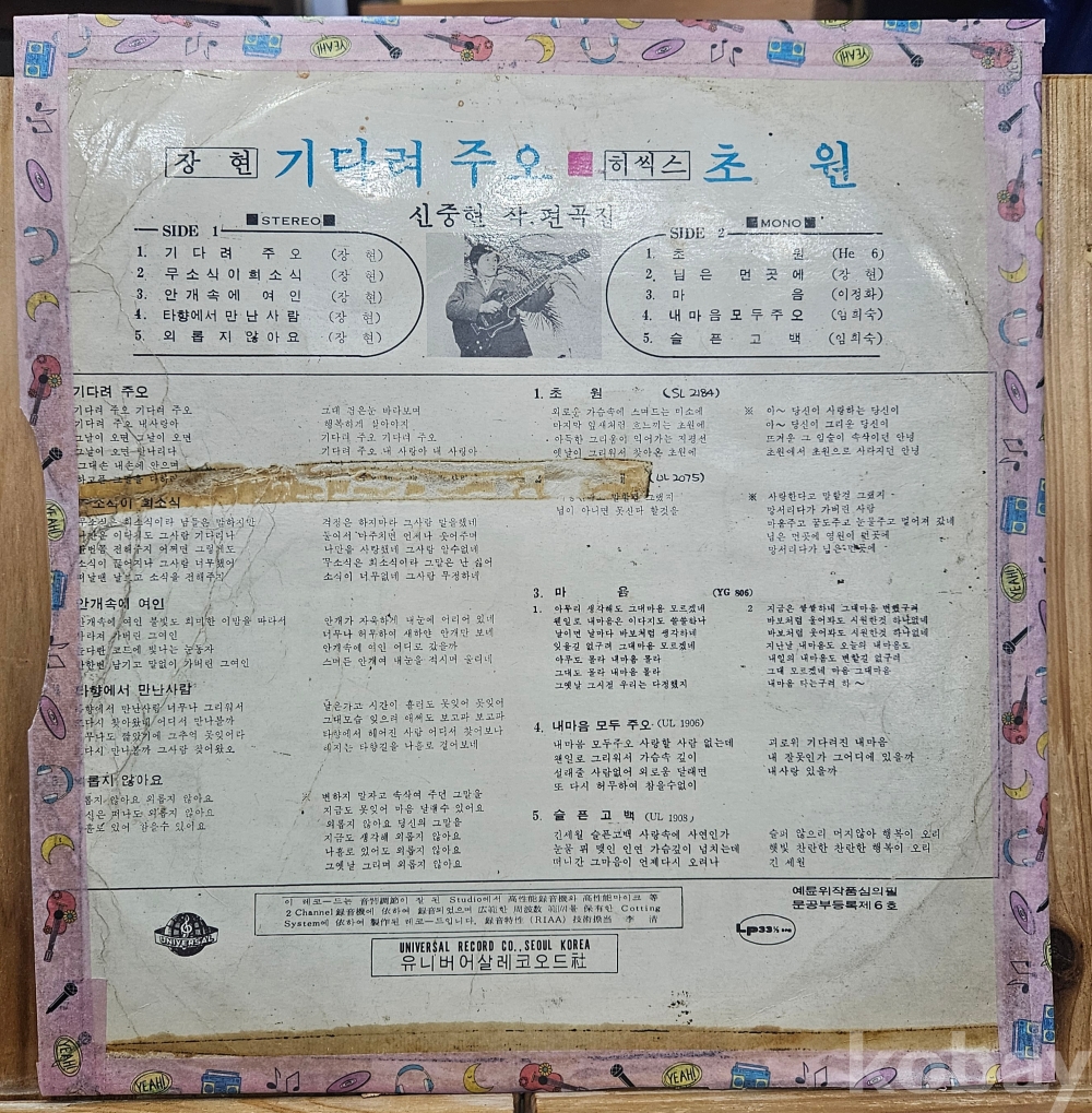 신중현사단의 대표 남가수 [ 장현 ] 선생님의 [ 기다려주오 ] 데뷔 음반 입니다.