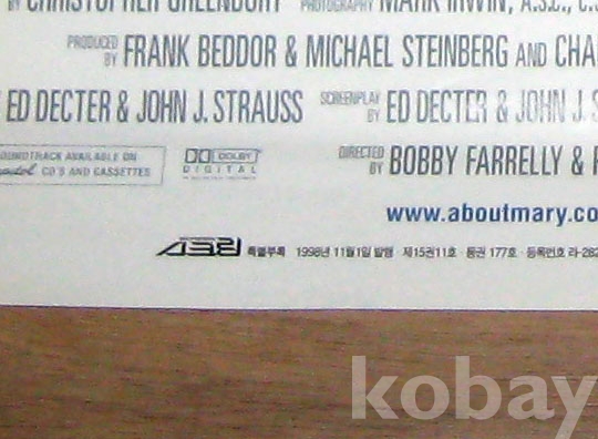 카메론 디아즈 주연 영화 / 메리에겐 뭔가 특별한 것이 있다 90년대 영화잡지 스크린 특별부록 대형 포스터 .