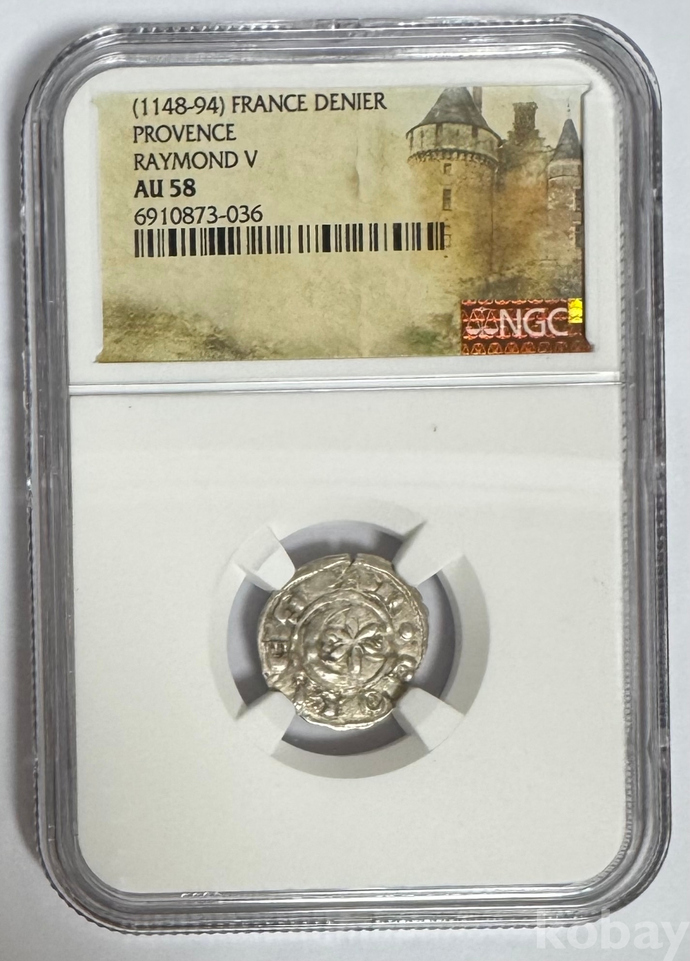 [중세주화] 1148-94년 프랑스 프로방스 레이몽 5세 드니에 은화 NGC AU 58
