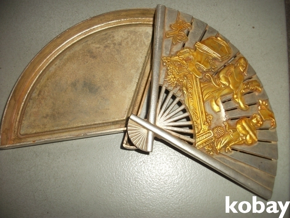황금멕기로 고대신선을 투각 운치을 더해주는 부채형여닷이 황실에서 사용 함직함 전체백통으로 착안이잘된