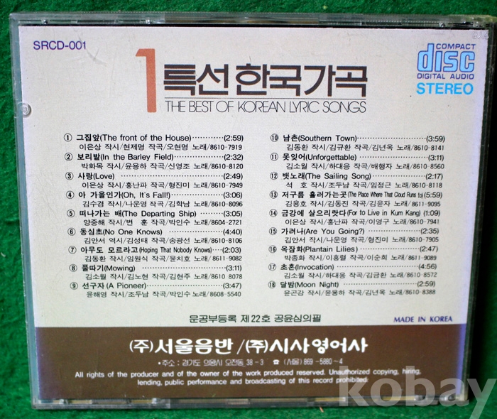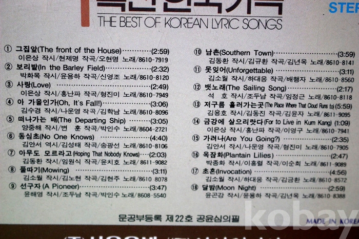 수록 곡 목은 사진을 참조하시기 바랍니다