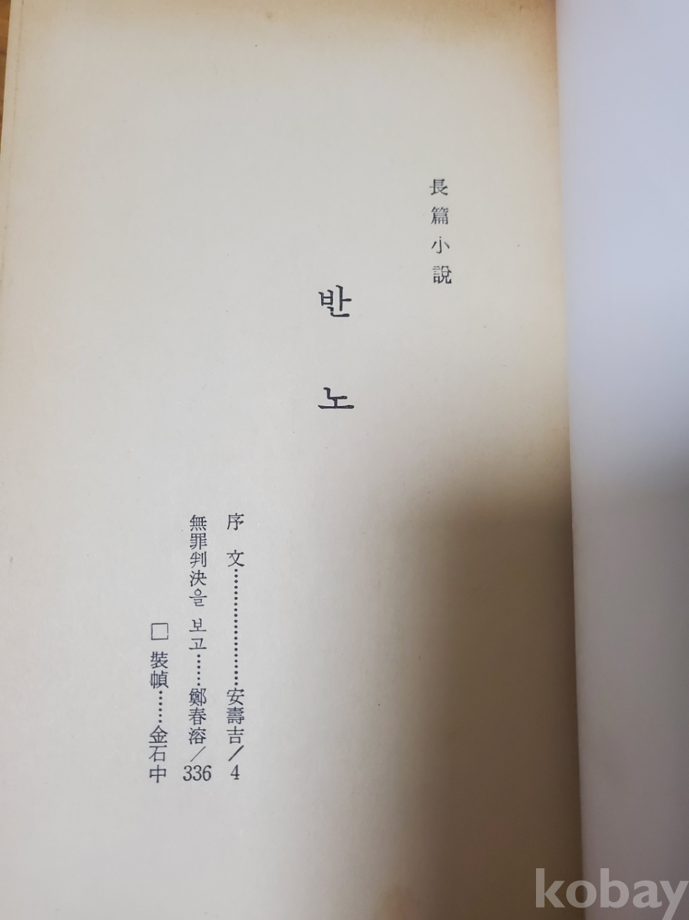 1. 반노, 염재만, 한진출판사, 1982년, 348쪽, 상태 상, 사진 참조
